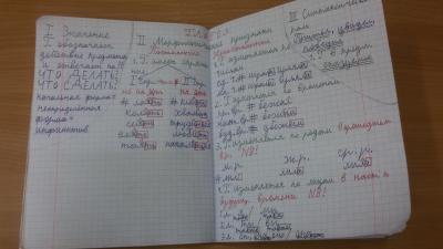 И в заключении хотелось бы сказать, что каждая часть речи оформляется на разворот в конспектах следующим образом: