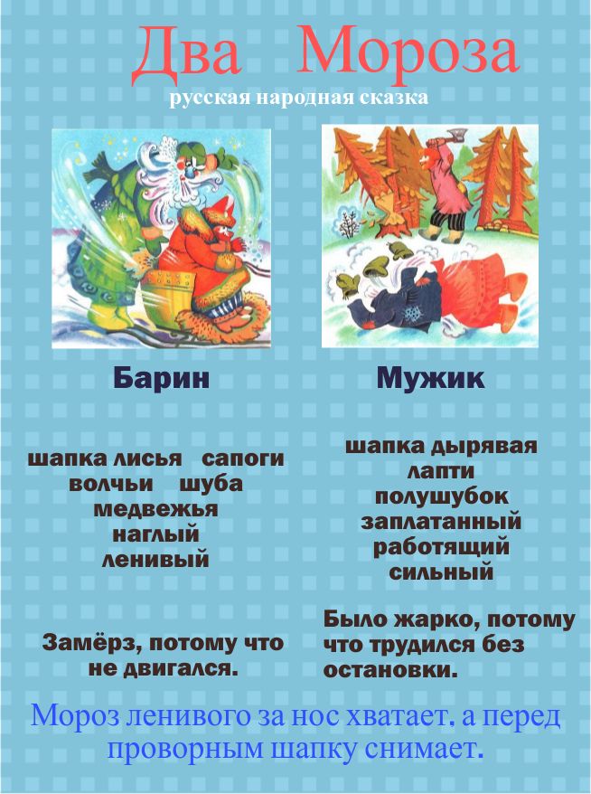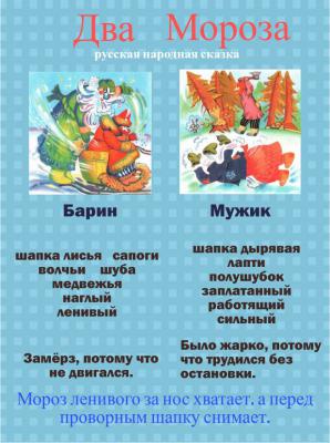 При работе над русской народной сказкой «Два Мороза» для сравнения Барина и Мужика использовался онлайн-редактор Ease.ly, в котором учащиеся наглядно сравнили образы двух персонажей.