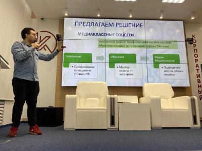 – Бесспорно, медиаклассники (о, новое слово придумал) постоянно погружены в работу с контентом. Здесь главная цель не цифровая компетентность, а помощь в освоении приемов работы с самой разной информацией, ведь наши выпускники будут не только журналистами, но и представителями самых разных специальностей, которые в любую минуту смогут работать с разными типами контента. Ученики медиакласса кроме основных предметов изучают профильные. К примеру, в программу 10 класса у нас входят: медиажурналистика, реклама и связи с общественностью, коммуникации в социальных сетях и другие. На занятиях ребята изучают основы создания контента, фотографируют, снимают видео, пишут заметки и статьи для школьных социальных сетей. Для младших медиаклассов, к примеру 7 класс, также большую роль играют кружки дополнительного образования: «Медиацентр», «Культура речи». Для учеников медиакласса организуется много мастер-классов по городу, как очные, так и онлайн. «Вишенка на торте» – это конкурсы, в которых соревнуются все школы проекта «Медиакласс в московской школе». Это – «Медиастарт» и «Медиатон».