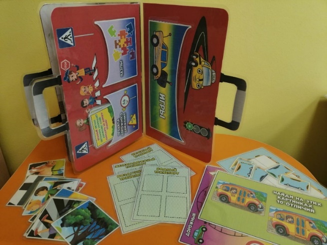 Детям очень понравился наш новый уголок. В нем они нашли много нового и интересного. Конечно, одним из самых интересных для ребят стал Кейсбук (литературный чемоданчик) «Правила дорожного движения» (лото, пазлы, загадки, стихи, ребусы, лабиринты). Новая форма игры всегда привлекает детей.