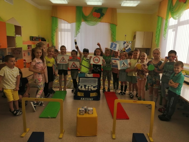 В группе «Морошка» был создан уголок «Правила дорожного движения». Наши родители приняли самое активное участие в формировании этого уголка. Они вместе с ребятами изготовили макеты разноэтажных домов для сюжетно-ролевых игр и моделирования детьми дорожных ситуаций, изготовили костюм сотрудника ДПС, предложили игры для картотеки игр по ПДД.