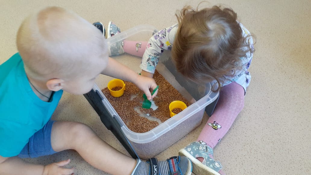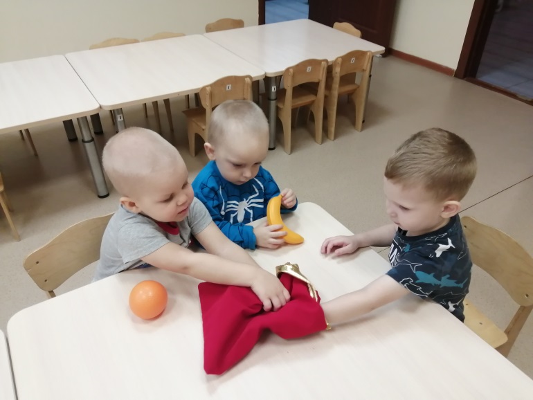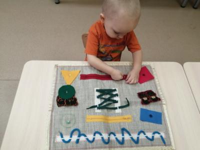Особое внимание мы уделяем дидактическим играм и пособиям, которые создаем самостоятельно, учитывая возможности и желания наших малышей, так как, играя, наши детки учатся и развиваются. Для удобства использования пальчиковых упражнений изготовили лэпбук с играми, в кармашках которых находятся различные игры – «Веселые резиночки», карточки «Угадай, чей след», «Пальчиковый театр», изготовленный из фетра, и другие. Сшили развивающее полотно с замочками, липучками и пуговицами. Изготовили сенсорную коробочку с крупой, в которой ребенок, играя, может найти мелкую игрушку. Ящик ощущений, в нем находятся различные предметы для угадывания. Малыши ясельной группы очень любознательны, они учатся общаться и взаимодействовать друг с другом, совместно добывая новые знания.