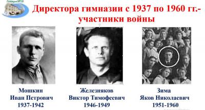 Гимназия № 13, в которой я работаю, сильна традициями духовно-нравственного воспитания. Не вернулся с войны, погиб в боях под Сталинградом первый директор нашей школы – Мошкин Иван Петрович. В 1942 году состоялся последний, военный выпуск. Затем в школе был расположен госпиталь № 2494.