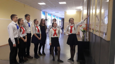 Традиционно проводятся классные часы, Уроки мужества, посвященные памяти первого директора нашей школы – Мошкина Ивана Петровича, памяти Эдуарда Александровича Быкова, ученика нашей школы героя Советского Союза Евгения Григорьевича Габова, памяти учеников нашей школы, тех, кто со школьной скамьи ушел на фронт. Митинги проводятся у мемориальной стены «Помнит мир спасенный», где увековечены имена погибших героев, или на ШКОЛЬНОЙ АЛЛЕЕ Памяти, заложенной в октябре 2014 году по инициативе учителя русского языка и литературы Ивановой Людмилы Сергеевны, руководителя гуманитарно-эстетического клуба «Россияне».