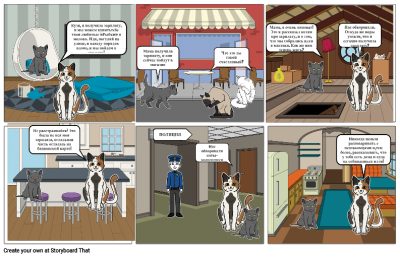 – Что это ты такой счастливый? Кузя был очень доверчивым и рассказал котам, что мама получила зарплату, и они сейчас пойдут в магазин. Тут вышла Мурка, и они с Кузей отправились за покупками. А когда вернулись домой, то увидели, что у них дома все разбросано и пропали все деньги! Мама Мурка расстроилась и сказала:
