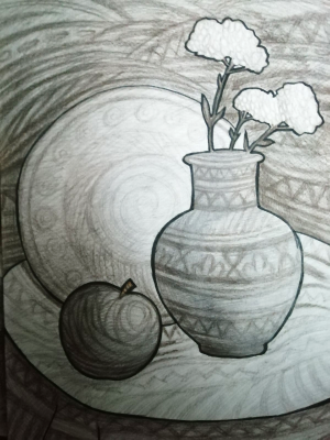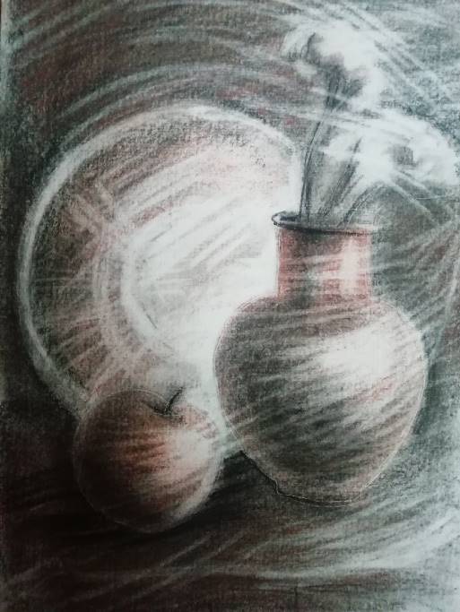 Работа над натюрмортом обязательно входит в учебную программу дисциплины «Рисунок». Изучение разных предметов быта в процессе рисования натурной постановки дает возможность обучающимся использовать ранее полученные знания линейной и воздушной перспективы, навыки линейно-конструктивного построения предметов на плоскости, умения работать с тоном и передавать материальную фактуру предметов. Однако, работа над натюрмортом не должна сводиться к решению исключительно учебных задач. Процесс обучения строится по принципу «от простого к сложному» и характеризуется постепенным усложнением задач. Преподавание учебной дисциплины «Рисунок» одаренным детям требует от педагога определенного методического подхода к этому предмету, а именно создание системы упражнений и заданий, способствующих развитию творческих способностей.