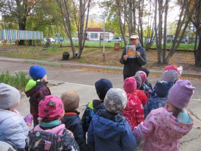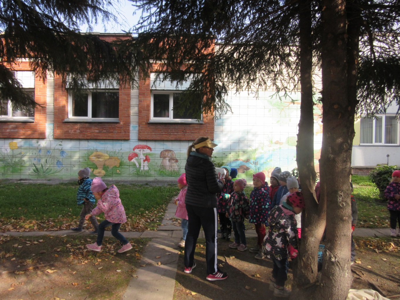 После выполнения задания инструктор ведёт детей на спортивную площадку, по пути рассматривая деревья и сравнивая листики.