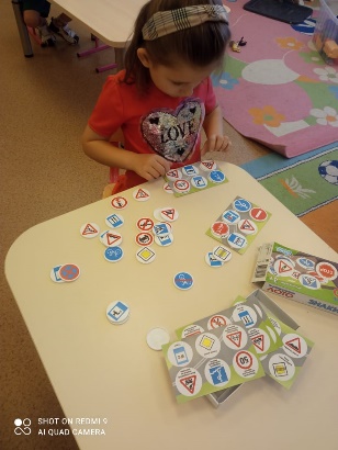 Экскурсия по ПДД «Изучаем дорожные знаки». Совместно с родителями создали коллекцию лэпбуков по ППБ, ПДД, обновили дидактические игры по правилам безопасности, в уголок художественной литературы родители вместе с детьми смастерили книжки-малышки «Семья за безопасность на дороге».