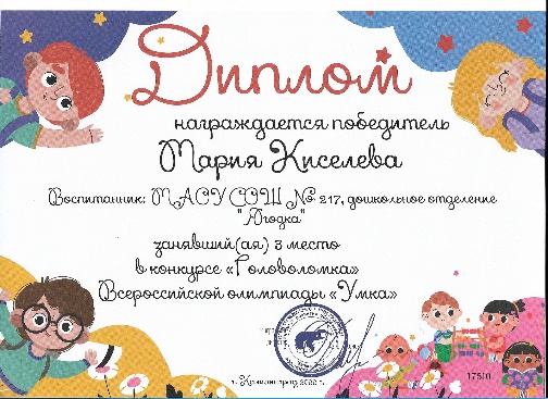 Положительные результаты от создания условий для развития математических способностей детей нашей группы подтверждаются многочисленными грамотами различных конкурсов. В подготовительной группе дети легко классифицируют, обобщают, сравнивают, анализируют, делают умозаключения, выводы, группируют по определенным признакам. Также очень важно, что дети приобрели такие качества, как уверенность в себе, самостоятельность, умение радоваться своим результатам.