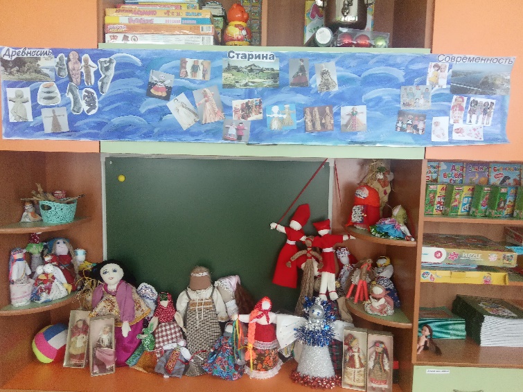 – «История появления куклы», в ходе которой мы познакомились с историей возникновения куклы и путешествовали по реке времени: побывали в гостях у древних людей, заглянули в жилище людей из старины и узнали, чем играли дети, по гудку парохода вернулись в современность.
