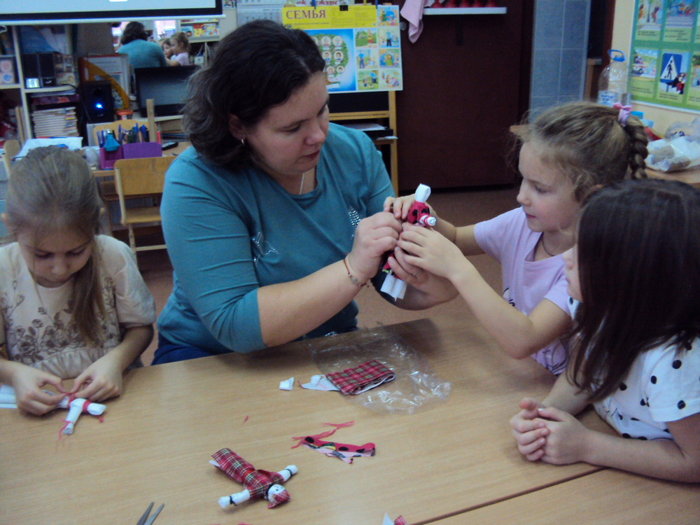 Над проектом мы работали три месяца, за это время мы сходили на экскурсию в музей «Горница», в библиотеку им. Гашека, провели несколько мастер-классов по изготовлению кукол и оберегов. Дети узнали много интересного о традициях русского народа, праздниках, костюмах. Большую помощь в реализации поставленных задач оказали наши родители.