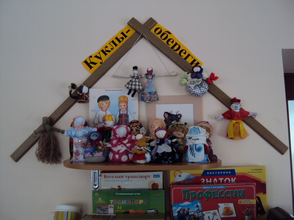 Наших детей так заинтересовали народные куклы и обереги, что мы решили создать в группе музей семейных кукол-оберегов. Желающие изготовили свою куклу-оберег с описанием.