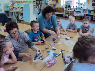 В гости к нам пришла бабушка нашего воспитанника Вани и рассказала детям о куклах, которыми играли в ее детстве. А после провела мастер-класс по изготовлению тряпичной куклы, сделанной своими руками, без иголок, путем скручивания и заматывания. Старанию и удивлению детей не было предела. Получились куклы – мальчики и девочки. Детям так понравилось, что долго не могли отпустить нашу гостью. Некоторые детки попросили оставшиеся заготовки, для того чтобы дома мамам показать свои умения в изготовлении кукол.