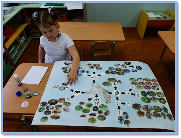 При изучении природы Омской области изготавливается и составляется интеллектуальная карта. Здесь ребята применяют все свои знания творчески и графически. К примеру, составляя такую карту, ребята называют животных Омской области, могут их определить по видам (хищники, травоядные, всеядные).