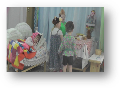 В своей работе я использую различные формы организации театрализованной деятельности: драматизация, музыкальные спектакли, праздники, развлечения, литературно-музыкальные гостиные. Основная форма – театрализованные занятия в кружке «Дорогою добра» (фронтальные, подгрупповые и индивидуальные).
