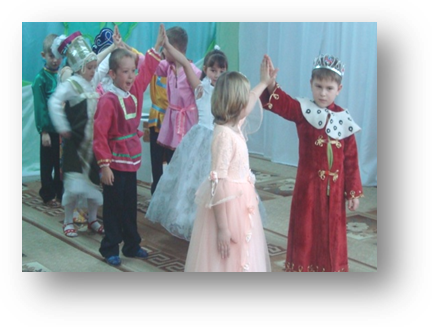 Исходя из того, что музыкально-театрализованная деятельность базируется на принципах развивающего обучения, методы и организация которых опираются на закономерности развития ребенка, я обязательно учитываю психологическую комфортность для своих воспитанников. И здесь особое значение отведено театрализованной игре, ведь по результатам исследований (А. В. Запорожец, Д. Б. Эльконин) именно театрализованная игра помогает приобщить детей к литературному, драматическому и театральному искусству и дает возможность воспитанникам постоянно переходить на всё новый этап их личностного, творческого роста. Поэтому я систематизировала свою работу с детьми так, что основным методом развития стал метод игровой импровизации (разыгрывание сюжета, сочинение танцевальной композиции, пантомимы, этюда без предварительного заучивания).
