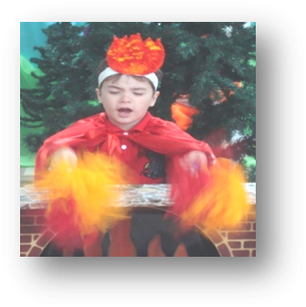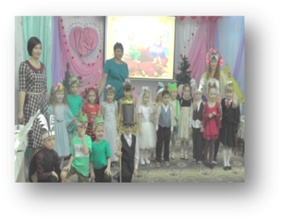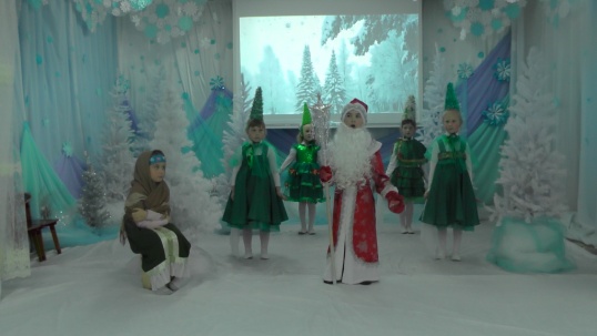Хочется отметить, что из 45 детей двух групп, которые приняли участие в сказке, половина актерского состава (23 чел.) дети-логопаты, 1 ребёнок со статусом ОВЗ/ЗПР. Так как сюжет сценария был достаточно многоплановым и объемным, я задействовала не только детей этих групп, но и ввела дополнительно ещё две подгруппы: для воссоздания колорита раннего зимнего утра, с которого начинается спектакль, были привлечены «девочки-снежинки» из средней группы, они дополнили и украсили своим, пусть и небольшим танцем, песню «Белые снежинки», которую исполнила главная героиня сказки Настя, а воспитанники старшей группы «Слоненок» – это «деревенская молодежь», которая своим выступлением подчеркнула красоту русской души, а также украсила сказку, показав какими бывают весёлыми и добрыми зимние русские забавы на селе.