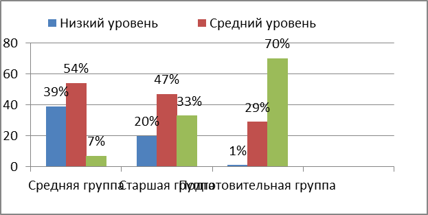 Диаграмма уровней развития творческих способностей детей в рамках реализации программы «Мир театра – детям!» на примере группы «Колобок» (23 чел.).