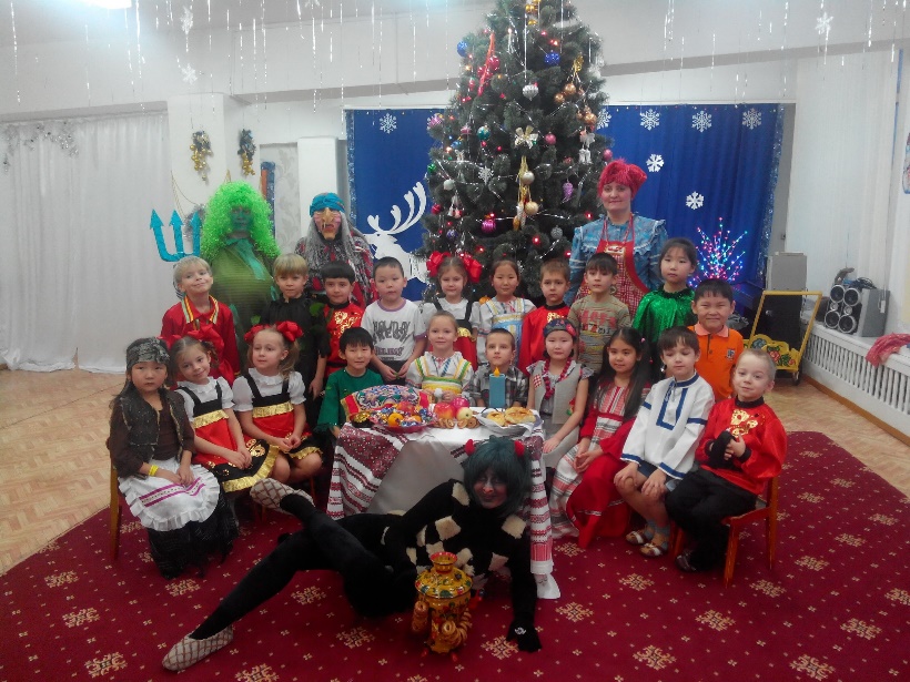 За время реализации этого проекта мы провели несколько тематических дней: День Колядки, День зимней народной приметы, День зимних загадок, День книжки-малышки. На занятиях мы узнали с детьми, кто такой Карачун. Познакомились с ролью медведя в фольклоре славян. Организовали книжную выставку «Русская народная сказка». Родители вместе с детьми изготовили книжки-малышки. Итогом реализации проекта стал праздник «От Рождества до Крещения». В интересной познавательно-игровой форме сказочные герои (Баба Яга, Черт, Водяной, Русская хозяйка) вместе с детьми пели заклички, гадали, «ныряли» в прорубь и приобщали представителей нечистой силы к традициям и обычаям русского народа. Дети выучили и исполнили на празднике калядки («Каляда, каляда, прикатила молода», «Сею, вею, посеваю», «К нам коза пришла», «Ай, спасибо хозяюшке»), русские обрядовые песни («У Ивана кудри завились», «На окне стоит коровка»), исполняемые во время святочных гаданий; познакомились с интересными обычаями и традициями Рождества и Крещения на Руси.