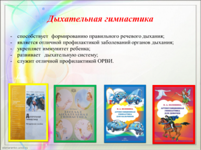 4. Дыхательная гимнастика: методическое пособие / Ольга Гуляева. – М.: Библиотечка «Первого сентября» 2007 – 32 с.