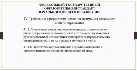 Вопросы воспитания крайне актуальны в современной системе образования. Повышенное внимание к данному вопросу отражается в Федеральном законе «Об образовании в Российской Федерации», в который были внесены соответствующие дополнения. Российское общество и государство выразили потребность в организации уроков с позиции единства обучения и воспитания. На уровне начального общего образования в обновлённом содержании ФГОС НОО определен ряд требований к личностным результатам, одним из которых является экологическое воспитание.