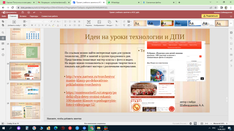Кроме того, интересным инструментом для более эффективной работы над задачами личностного и духовно-нравственного развития послужит создание буктрейлеров и совместных презентаций на платформе Яндекс. Применение этого инструмента в практике современного учителя открывает новые возможности в достижении образовательных и личностных результатов.