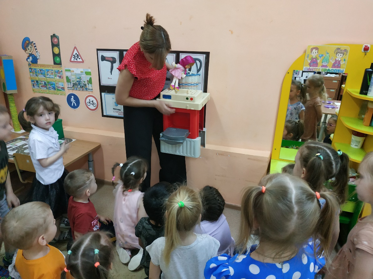 Воспитатель: Правильно, ребята! А у нас в группе есть стиральная машина?