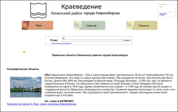 Электронный информационный ресурс «Краеведение. Ленинский район г. Новосибирск»