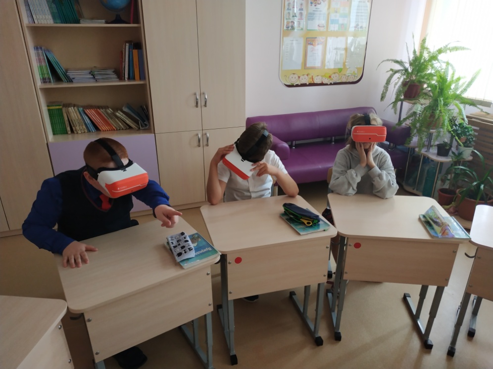 Например, в 4 классе особенно нравятся школьникам образовательные прогулки по лесу с дикими животными с использованием очков виртуальной реальности. На уроке интегрируются материалы по окружающему миру, литературному чтению, развитию речи. Учитель учит работать с интерактивной картой, правильно называть части света, растения и животных, подбирать материал в сети Интернет, рассказывать о результатах своих наблюдений, задавать вопросы по изучаемому материалу.