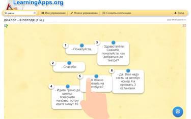 Например, можно предложить учащимся составить диалог «В городе» с использованием готовых фраз, которые нужно расположить в правильной последовательности.