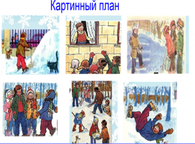 Составление картинного плана. Выходит один человек и выполняет задание у доски. Затем дает себе самооценку. |