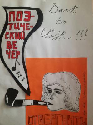 «…когда Елена Юрьевна предложила нам провести такое мероприятие, мы сразу же согласились…» (Евшина Арина). И первым делом изготовили афиши-плакаты в советском стиле.