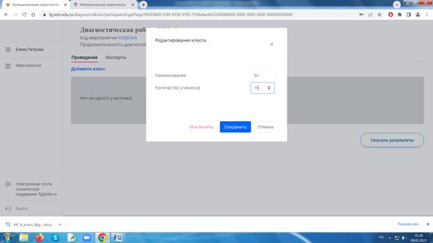 Наша работа создана, но ещё пока никому не выдана. Чтобы её выдать, добавляем класс, редактируем «Наименование и количество участников», нажимаем «Сохранить».