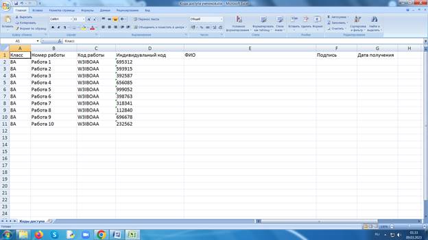 Коды доступа выдаются в виде электронной таблицы, куда надо впечатать ФИО.