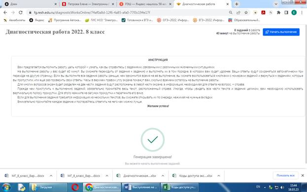 Теперь можно выдавать коды ученикам и экспертам и в заданное время проводить контрольную работу.
