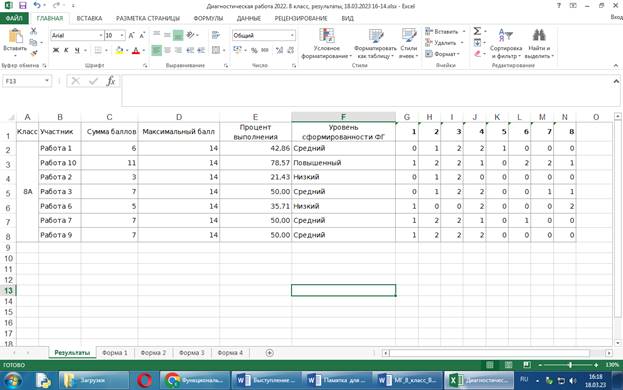 Как я уже говорила, после выполнения и проверки учитель может зайти и «Скачать результаты», которые будут созданы в электронной таблице.