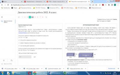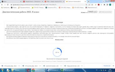 И здесь возникает ещё одна проблема: нам нужно выбрать из перечня работу, но мы, к сожалению, не можем посмотреть её содержание. Для примера давайте выберем 8 класс «Диагностическая работа 2022» и нажмем кнопку «Выбрать в конце» (нужно прокрутить экран вниз):
