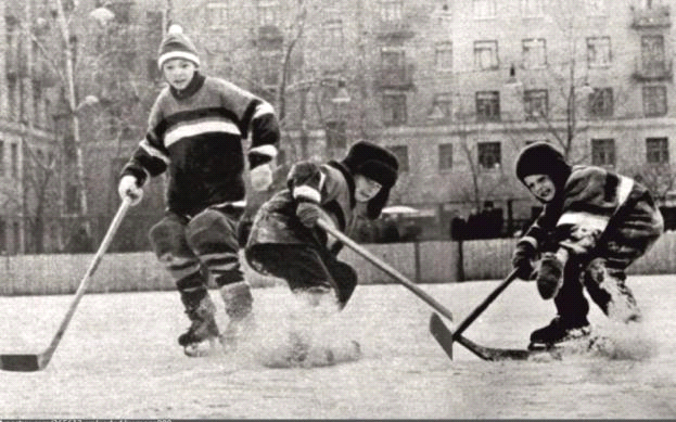 На фоне стабильных побед национальной сборной хоккеем «бредили» почти все. Почти в каждом дворе мальчишки играли в хоккей. Кто на дворовых проездах, поставив поперёк два кирпича, на подшитых валенках, с картонками вместо щитков и с клюшками, сооруженными из досок или стволов выброшенных после Нового года ёлок. Проезжающие время от времени по проезду автомобили аккуратно лавировали между поребриками, чтобы не раздавить «ворота» игроков.