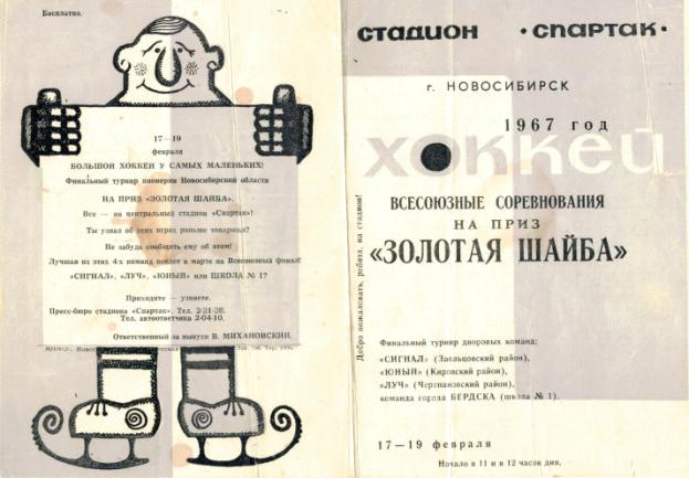 Из программы финального турнира дворовых команд Новосибирской области по хоккею на приз клуба «Золотой шайбы». Февраль 1967 года