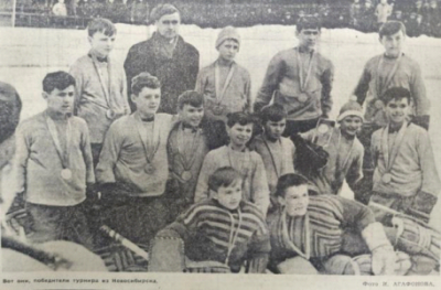Школы уже в 1950-х начали практиковать создание хоккейных команд. В январе 1957-го в Новосибирске под ведомством ГОРОНО было проведено первенство города среди школьников по хоккею с шайбой. На стадионах «Химик», «Спартак», «Динамо» и клуба «Транспортник» соревновались 36 школьных команд, общим количеством 540 человек. Розыгрыш показал значительный рост техники и тактики игры школ №№ 23, 36, 69, 56, 80, 12, 70 и ряда других по сравнению с прошлым годом. 40 учащихся выполнили нормативы I юношеского разряда, 80 человек нормативы II спортивного разряда». Первое место заняла команда школы № 19 (директор Варфоломеев А. А., преподаватель физвоспитания Зыков В. С.), второе – № 10 и третье – № 36.