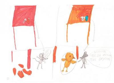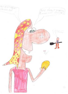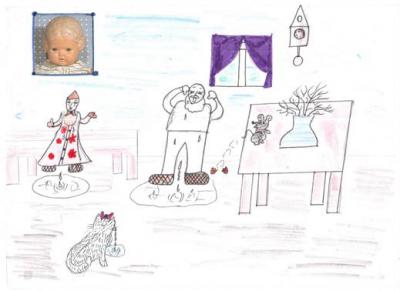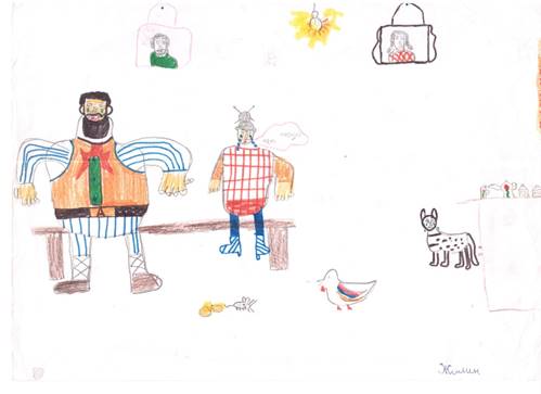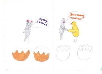 В качестве домашнего задания предлагается нарисовать сказку. И здесь работы удивляют, ведь учитель снова предоставляет свободу выбора стиля, цветовой гаммы, сюжета. Предлагаем рассмотреть рисунки учеников.