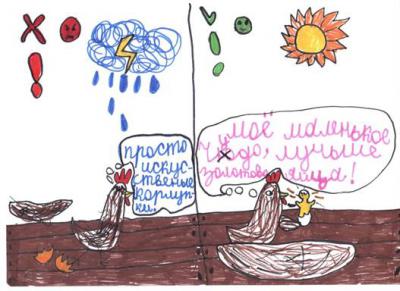 Лена показывает своим рисунком, где истинное счастье: