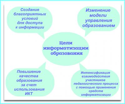Информатизация образования, в первую очередь, направлена на разработку методов и средств, ориентированных на реализацию основных воспитательных и образовательных педагогических целей с помощью использования новейших достижений компьютерной техники.