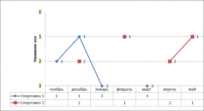 В период 2020-2021 года, когда данная методика еще не применялась, показатели результативности снизились на 50 % с января по апрель. Восстановление соревновательной формы в полном объеме произошло в мае (см. График № 1).