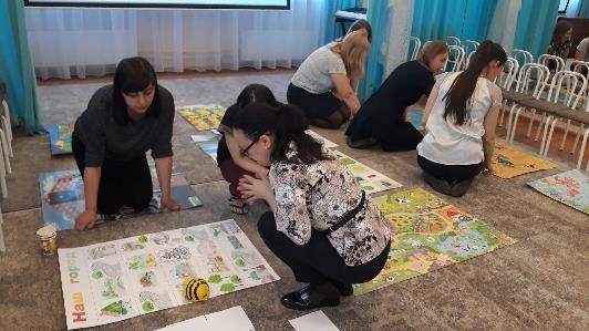 Старший воспитатель предлагает командам вспомнить и записать задачи по ОО «Физическое развитие». Побеждают педагоги, которые справились с заданием быстрее.