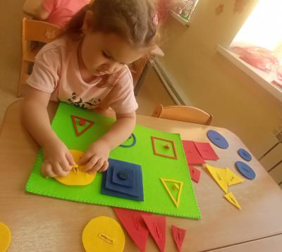 Это как непосредственно сама образовательная деятельность, так и продуктивная деятельность в качестве завершающего этапа основного занятия. Во время этой деятельности мы с детьми закрепляем, уточняем название цвета, формы, величины предмета; начинаем знакомить детей с ориентировкой на листе.