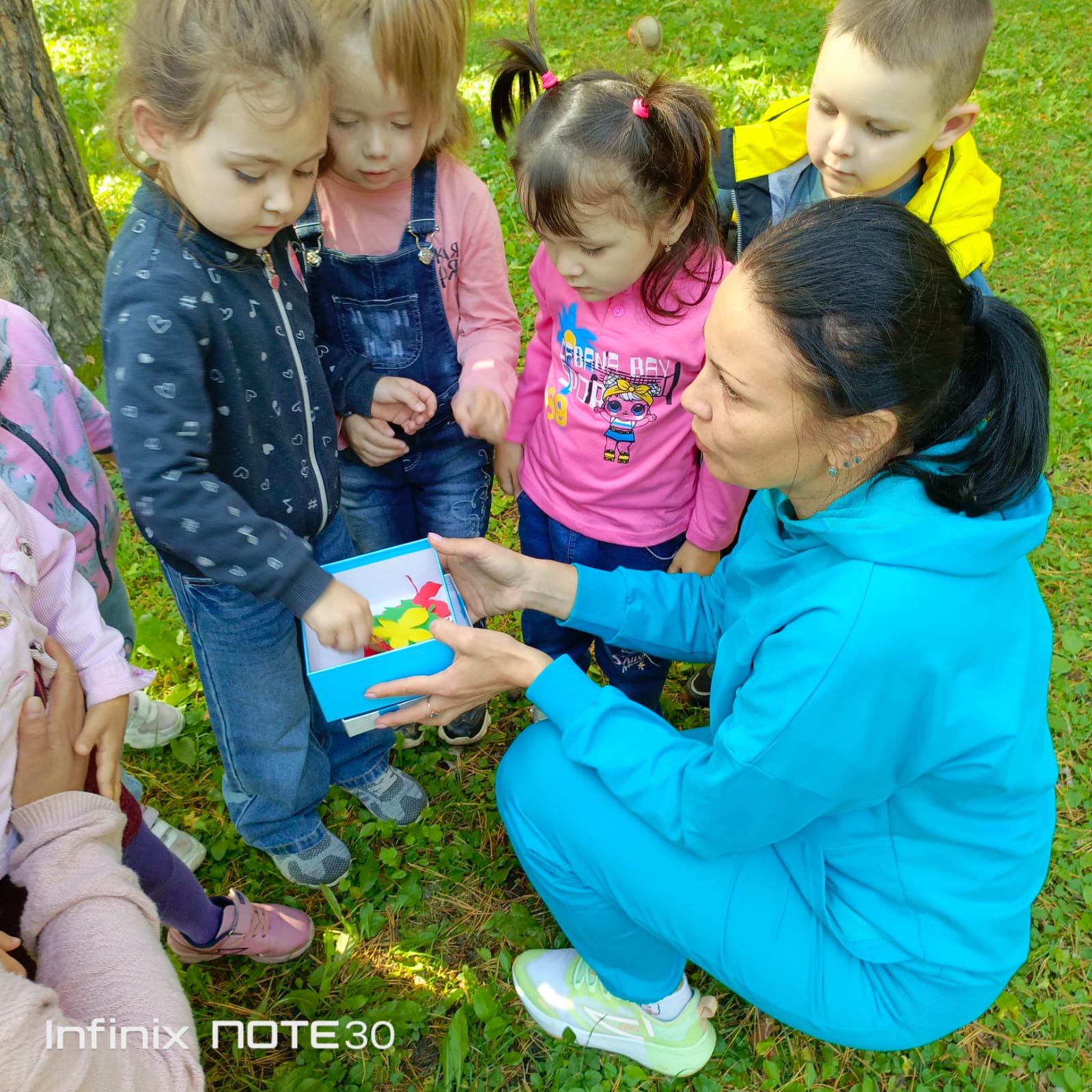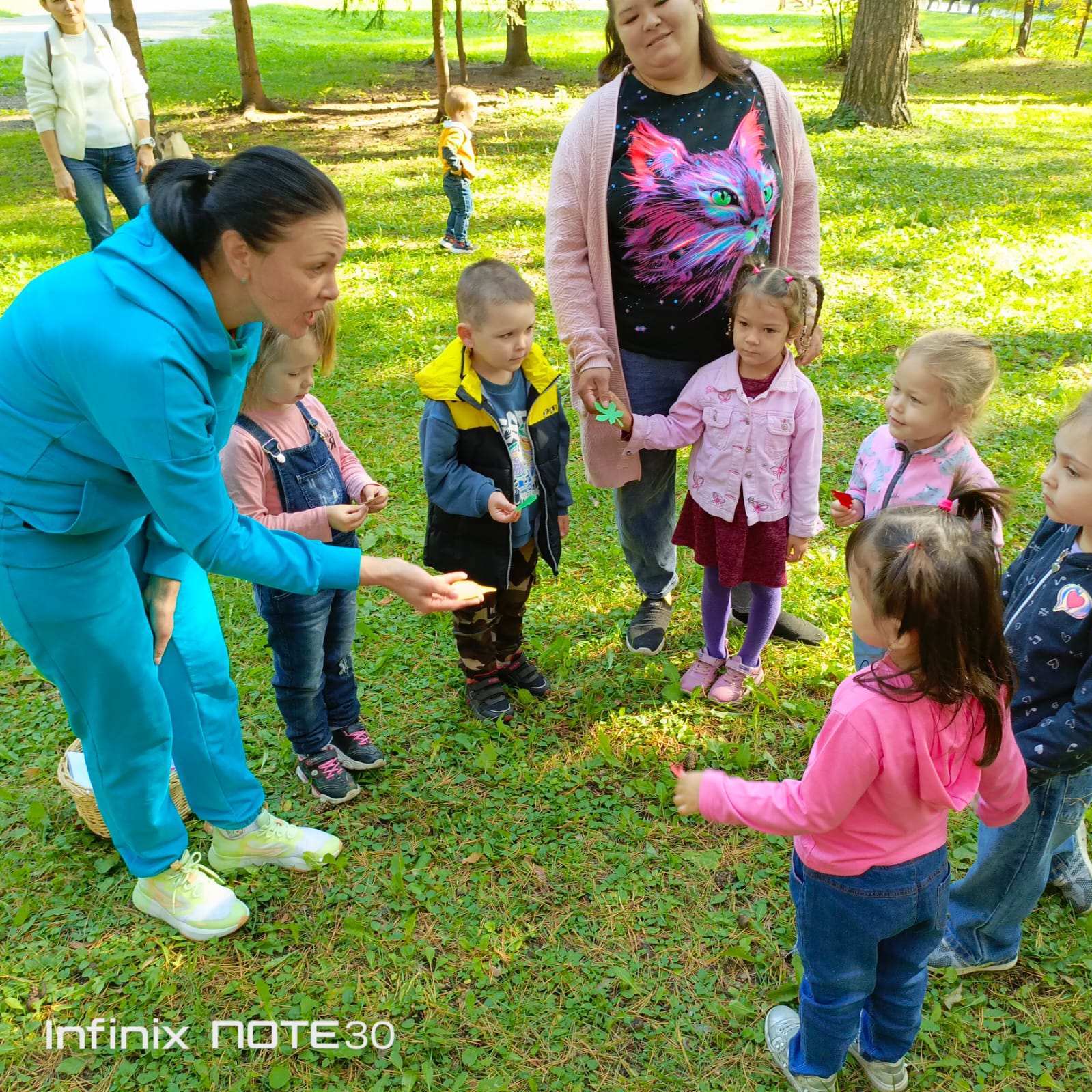 Ребята, давайте отправимся в путешествие и попробуем найти листочки.