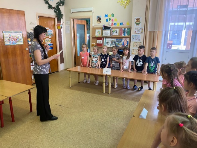 Учитель-логопед подводит итог седьмого задания и соревнований. Участники соревнований получают раскраски.
