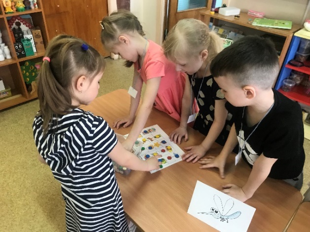 Учитель-логопед: ребята, у нас сегодня соревнования. Жуки против комаров. За правильные ответы вы будете получать фишки. Кто больше наберёт фишек, тот и победит.