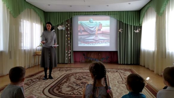 Посмотрите, ребята, на горящую свечу. Видите огонёк пламени? Но есть огонь, который вызывает у людей особые чувства и особые воспоминания. Во многих городах есть монументы Неизвестному солдату, где горит вечный огонь, а люди возлагают к нему цветы.